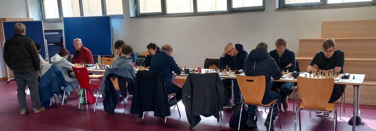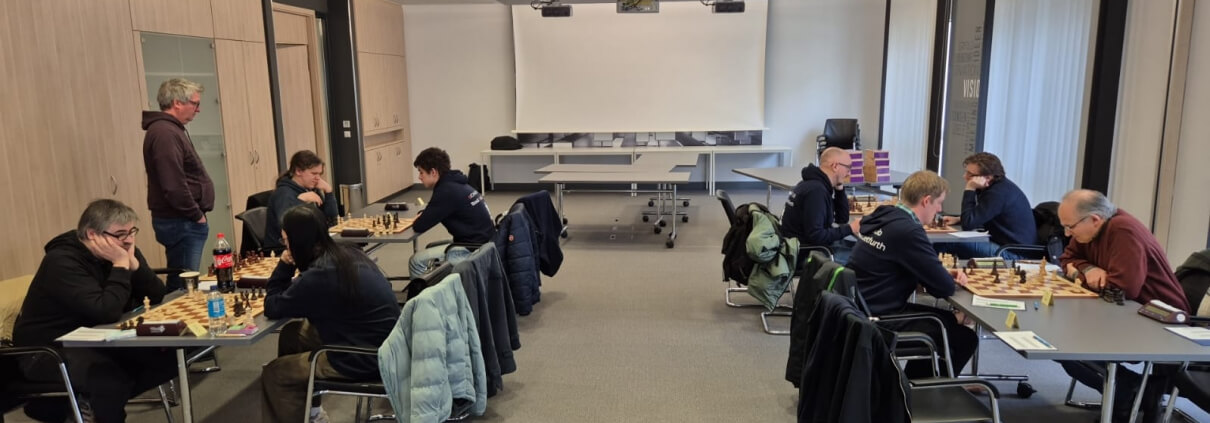 Kurz darauf musste Siegfried an Brett 8 seine Stellung leider aufgeben, nachdem er mit einer Figur weniger noch lange den Kopf über Wasser gehalten hat. Zwischenstand 1:1.