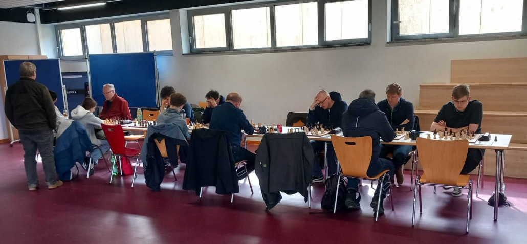 Kurz darauf musste Siegfried an Brett 8 seine Stellung leider aufgeben, nachdem er mit einer Figur weniger noch lange den Kopf über Wasser gehalten hat. Zwischenstand 1:1.