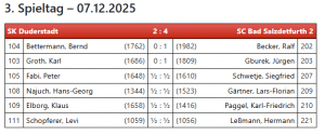 Erfreulicherweise stehen wir nach 3 Spieltagen mit 5 Mannschaftspunkten auch auf Platz 2 – Damit endet das Jahr doch höchst erfreulich.