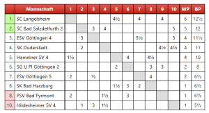 Am gestrigen Sonntag den 2. Advent hatte unsere 2. Mannschaft den letzten Mannschaftskampf des Jahres auswärts in Duderstadt. Dudestadt ist sehr stark und gleichmäßig besetzt und mit zwei Siegen auch ohne Punktverlust in die Saison gestartet. Demzufolge war vor Beginn bereits klar, dass wir ebenfalls in Bestbesetzung antreten müssen, um unseren ebenfalls starken Saisonstart bei zu behalten.
